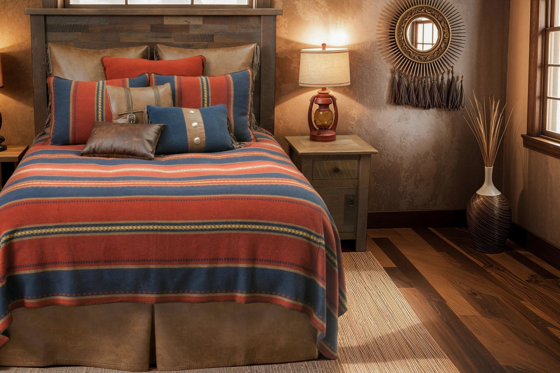 Wool Blend bedspread by Wooded River. The Lariat western design wool blend bedspread is featured in a bedroom setting.