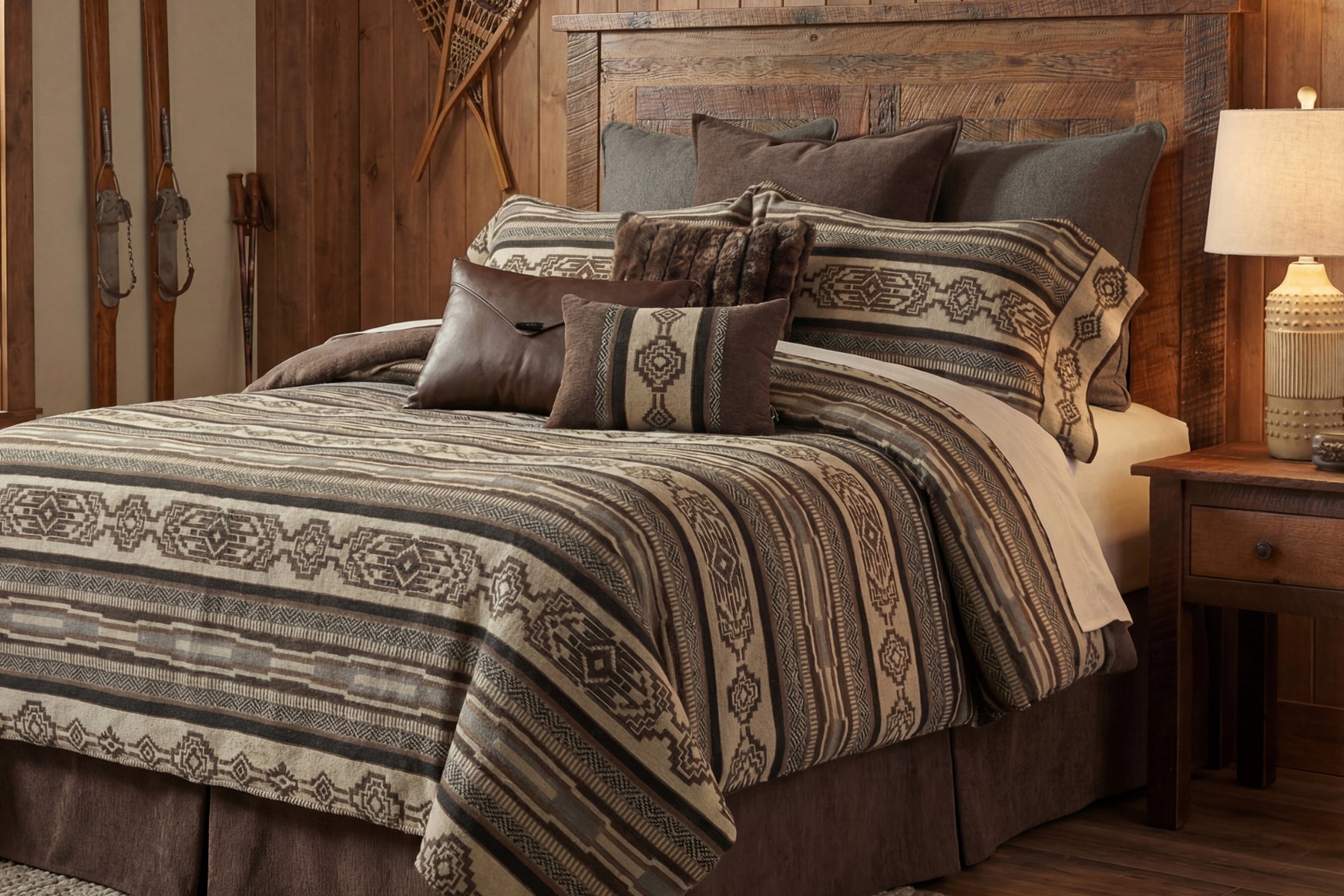 Upgrade your bedroom with the Lodge Lux II Bedding Set. This gorgeous bedding set will bring comfort and style to any bedroom. Crafted from a soft, washable-wool blend for a warm, non-scratchy feel and designed with a subtle look featuring calming neutrals and a Southwestern flare. The Lodge Lux II bedspread set is proudly made in the USA by expert craftspeople for quality assurance.