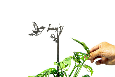 How happy would you be to have a hummingbird hovering over your houseplant? This Hummingbird plant stake can be used as a decorative compliment to any indoor or outdoor plant. The plant stake comes in two pieces, allowing you to adjust the height of the stake. Each piece is made of Corten steel, and it will form a beautiful natural rust patina that will protect the metal and provide long term protection against the elements.