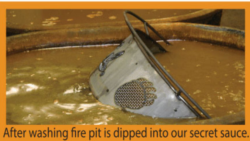 Each fire pit comes with a natural rust patina finish. The finish may have a yellow, brown, or even green appearance at first, and may also be flaky, dusty, or gritty to the touch. Once the fire pit is put into use (burned), the finish will turn to a darker, deep brown color. To avoid rust marks on the surface of your patio, or concrete pad, we recommend placing your fire pit on a non-flammable pad such as cement pavers, bricks, or large pieces and flat stone.