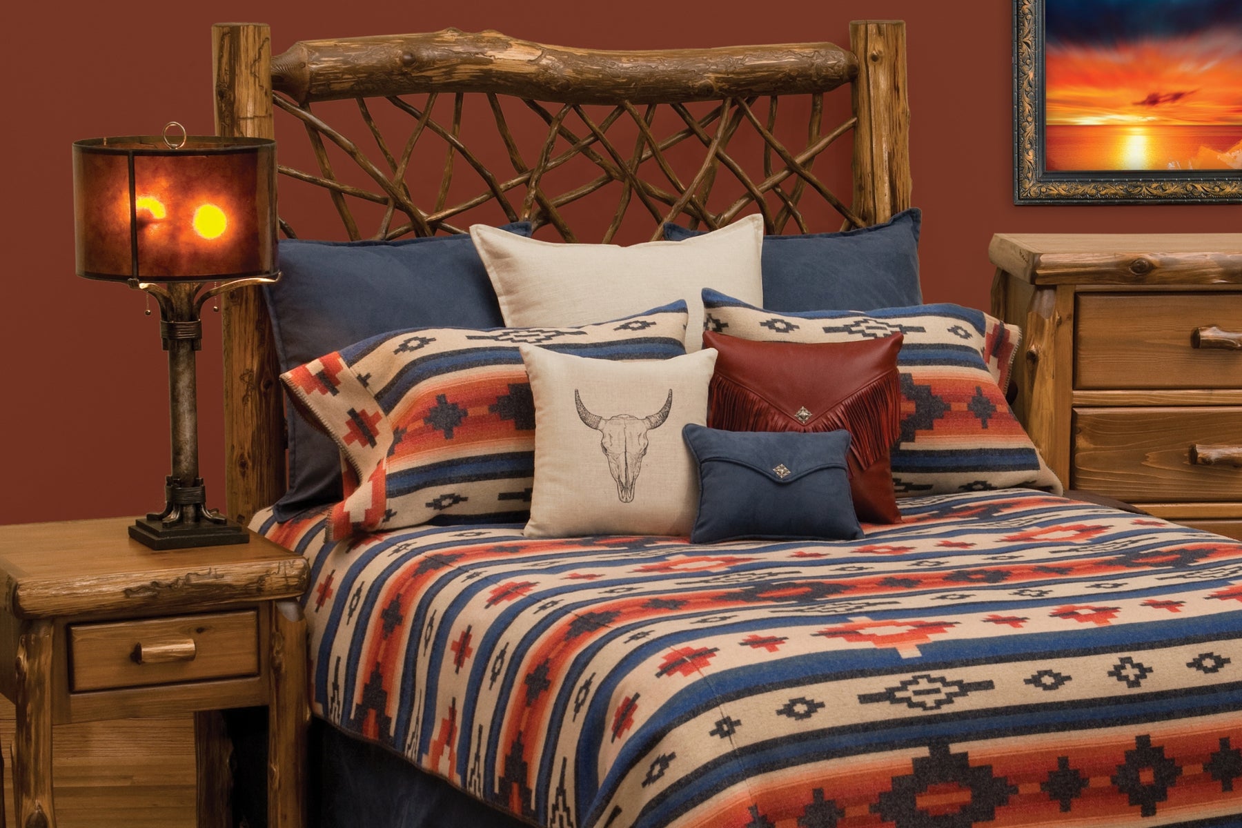Transform your bedroom into a vibrant landscape with The Red Rock Canyon Bedding Collection. This stunning Southwestern design features bold reds, oranges and blues expertly blended with creams to create a warm and inviting atmosphere. Crafted from a washable wool-blend fabric, this bedding is incredibly soft yet durable.