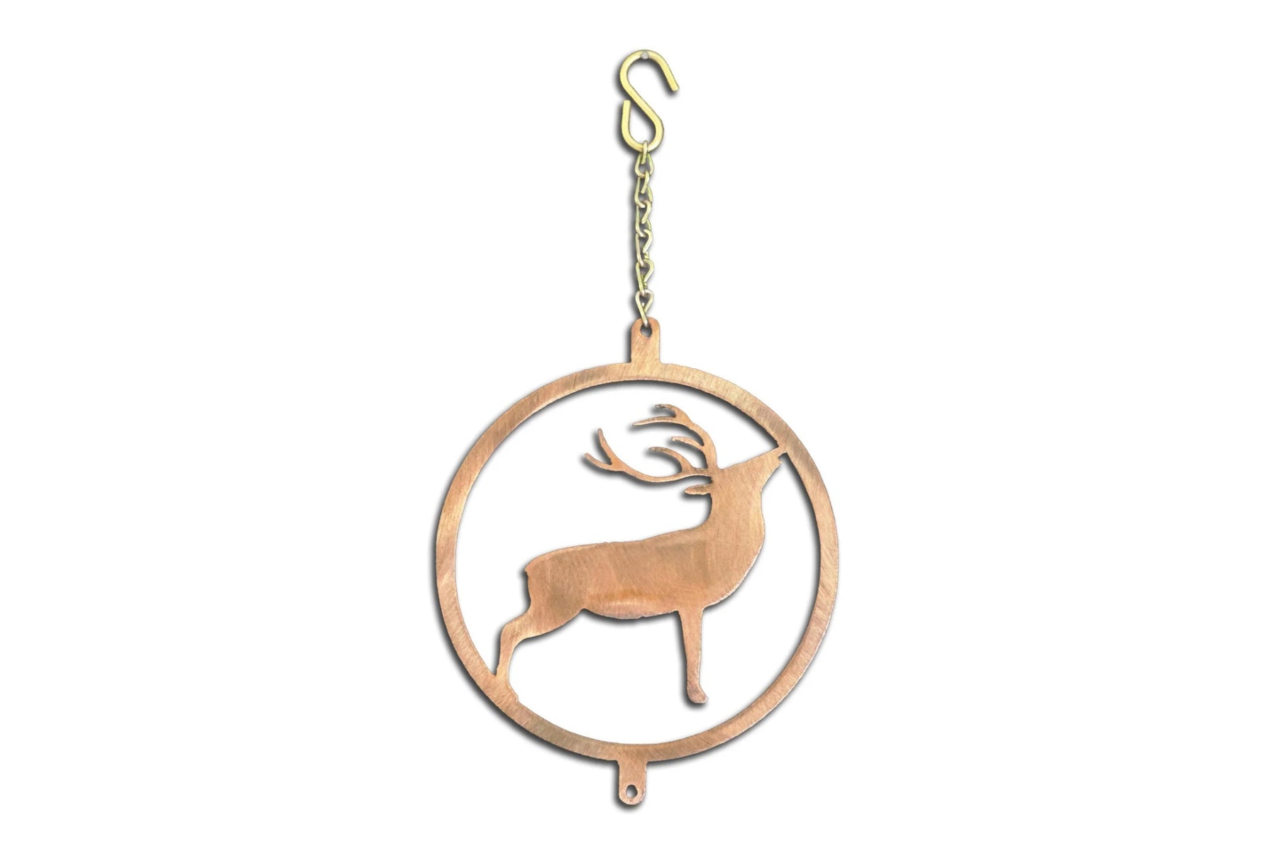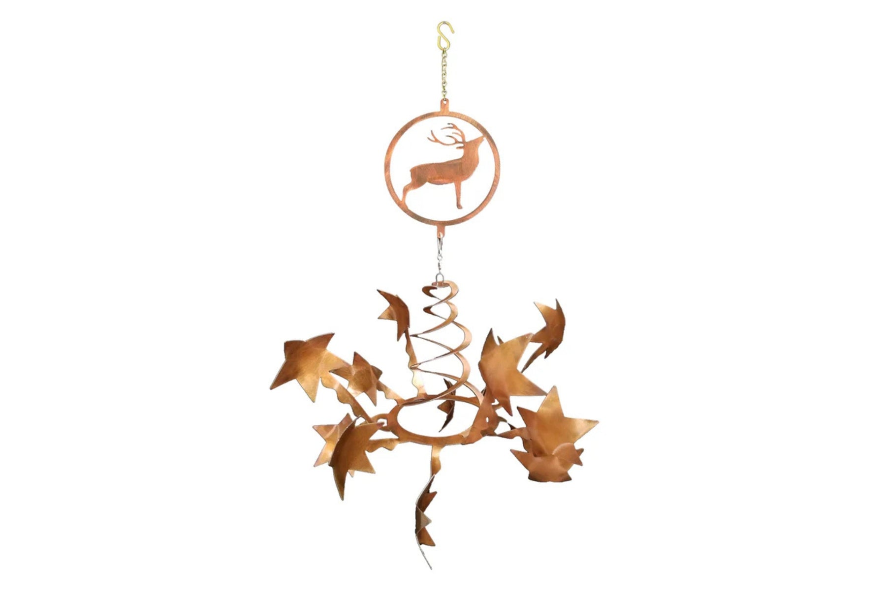 Transform your outdoor space with this deer/buck deer star wind sculpture by Chris Crooks Designs. This wind sculpture is handcrafted from 18-gauge steel and features a durable sealed rusted finish. Each wind spinner features double spiral rising from a sturdy circular base holding 12-star shaped arms that catch even the slightest breeze.