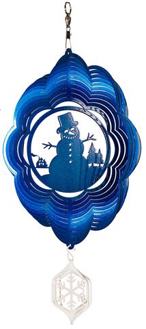 Add this beautiful eye catching metal wind spinner which features a snowman design to your outdoor garden area. Each wind spinner is constructed of 18 gauge metal, and is painted with a baked on powder coat finish. This is a high gloss finish and will look different depending on the sunlight. Each spinner includes a stainless steel ball bearing swivel.