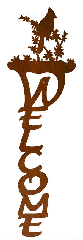 Greet a visitor into your home, cabin, or lodge with this cardinal vertical metal welcome sign. This sign is perfect to hang in those places with limited space due to its vertical presentation. The powder coat metal finish on each piece will insure many years of use in an outdoor setting.