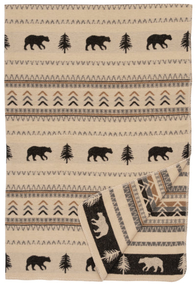 The Boulder wool blend throw blanket is warm, and perfect for wrapping up on a cold night. The bear and pine tree design will fit beautifully in any wildlife decorated space in your home or cabin. This wool blended throw is not only decorative, it is soft-to-the-touch, washable, and made of a high-quality Italian wool blend.